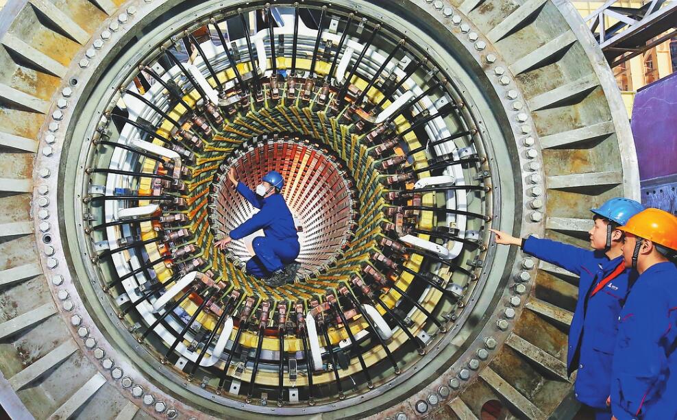 近日,哈電集團哈爾濱電機廠(chǎng)有限責任公司喜獲甘肅省電力投資集團公司常樂(lè )4臺百萬(wàn)千瓦超超臨界汽輪發(fā)電機制造合同,實(shí)現了2017年市場(chǎng)開(kāi)發(fā)“開(kāi)門(mén)紅”,顯示了哈電機在百萬(wàn)火電領(lǐng)域的雄厚實(shí)力。圖為哈電機百萬(wàn)火電項目產(chǎn)品羅源灣1號機定子正進(jìn)行絕緣引水管防護工序。